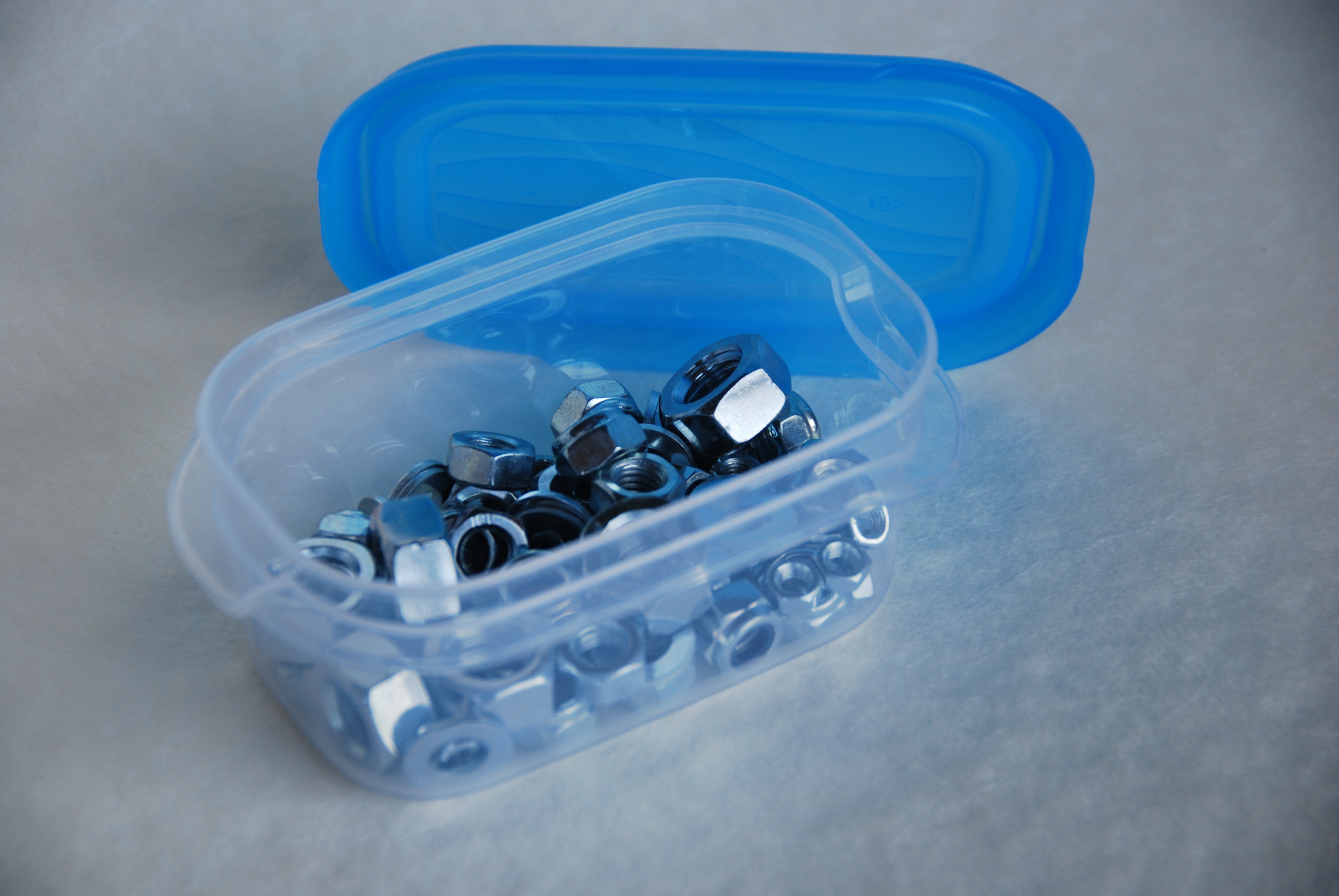 100 Muttern und Unterlagsscheiben als Schatz, in der Box